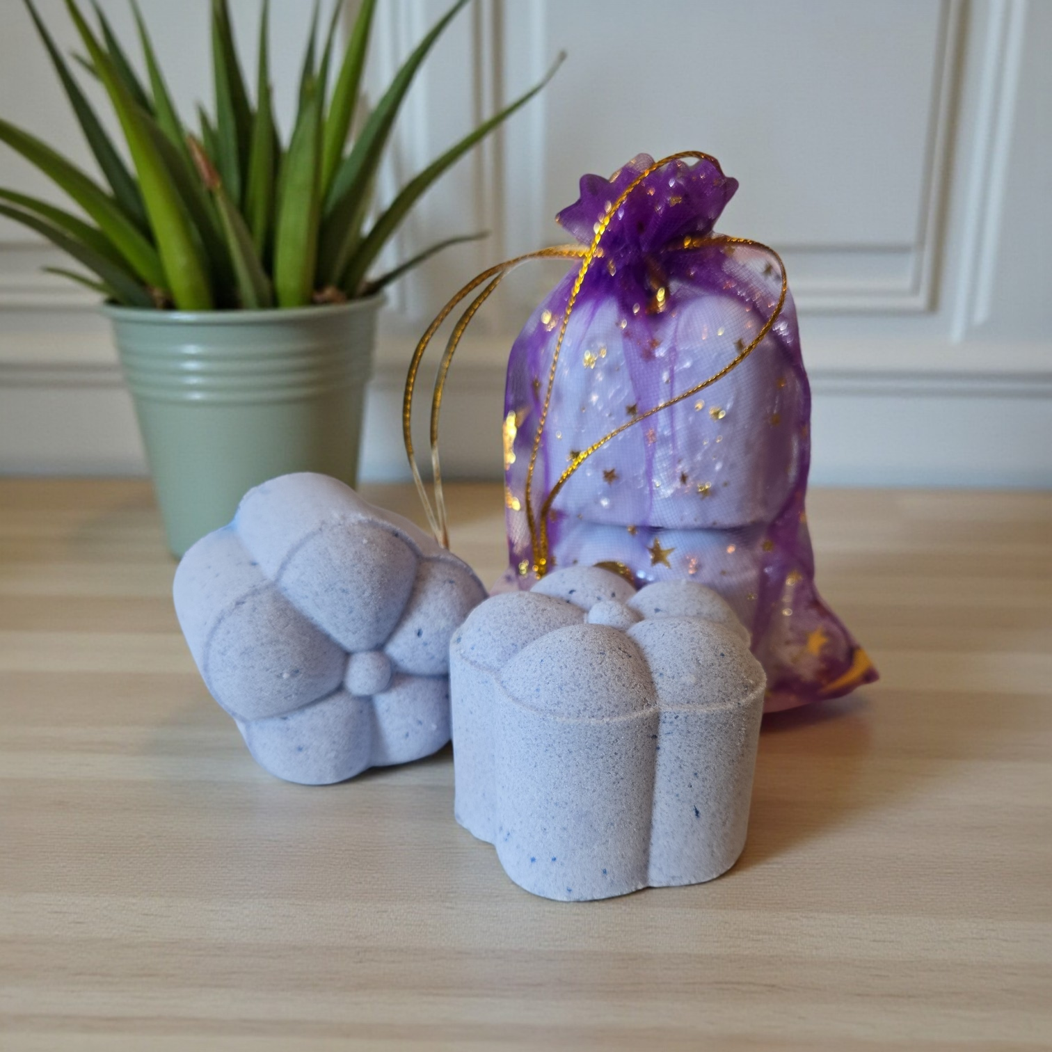 Our shower steamers come to you shrink wrapped with organza bags. Menthol makes everything tingly, please wash your hands after handling the shower steamers and their bags.